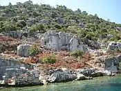 Simena36°11′41.2″N 29°51′49.7″E / 36.194778°N 29.863806°E / 36.194778; 29.863806, elevation 13 m (43 ft), 1.513 km (0.940 mi) from Kaleüçağız.Stephanus, Pliny.