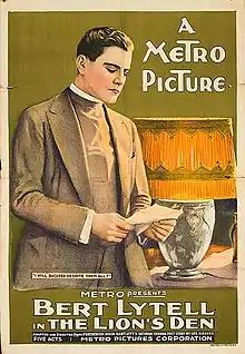 Metro Pictures Corporation was a motion picture production company founded in 1915 in the United States. It was, along with Goldwyn Pictures and Louis B. Mayer Pictures Corporation, one of the forerunners of Metro-Goldwyn-Mayer. The company produced its films in New York, Los Angeles, and sometimes at leased facilities in Fort Lee, New Jersey.[1] Metro Pictures was founded as a film distribution company in February 1915 by a number of "exchange men" with Richard A. Rowland as president, George Grombacher as vice-president and Louis B. Mayer as secretary.[2] It soon also began producing its own films, with Sealed Valley being Metro's first production, which was released on August 2, 1915.[3]
