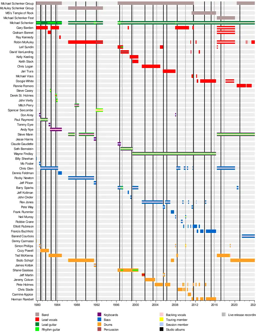 | Mo Foster | 1980 (died 2023)[6] | bass | The Michael Schenker Group (1980) | |