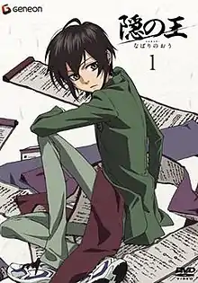 The episodes of the 2008 Japanese anime series Nabari no Ou (隠の王, lit. King of Nabari) are directed by Kunihisa Sugishima and animated by J.C.Staff.[1] The anime is an adaptation of Yuhki Kamatani's Nabari no Ou manga, which was first serialized in the Japanese shōnen manga magazine Monthly GFantasy in 2004.[2] The story revolves around Rokujo Miharu, a 14-year-old student who unknowingly possesses a powerful hijutsu within him, and his introduction into the hidden ninja world of Nabari upon his power's activation.