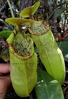 {{cite web}}: CS1 maint: multiple names: authors list (link) - ↑ Tamizi, Amin-Asyraf; Mohamad, Salasiah; Shakri, Mohamad-Alias; Mohd-Rusli, Nurshahidah; Mat-Amin, Noriha; Mohamad-Jamali, Muhamad-Arif (2023-08-08). "Insights into The Diversity of Nepenthes L. (Nepenthaceae) Across Peninsular Malaysia, Including The First Sighting of an Undescribed Taxon with Flared Peristomes and Quadruple-Row Ventral Wings". Journal of Sustainable Natural Resources. 4 (1): 10–36. ISSN 2716-7143.