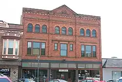 Former Odd Fellows Building 1890s 220 Fourth Avenue West Ashland, Wisconsin Romanesque Revival architecture, although re-sided with modern aluminum siding. Currently used as a commercial business building.