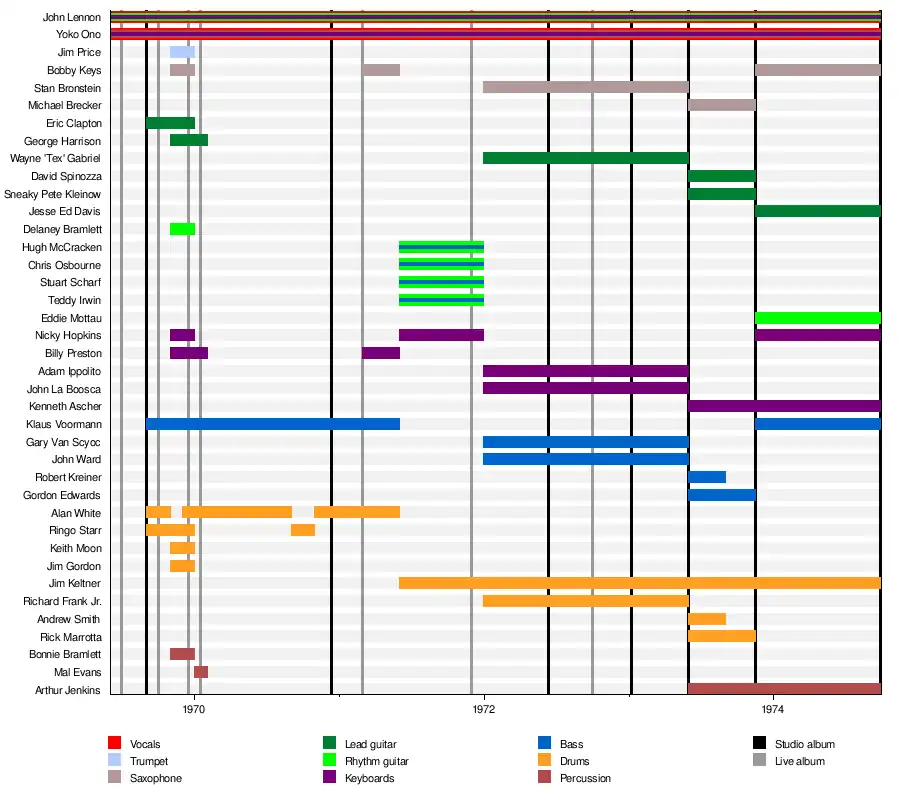 | Plastic Ono Band (February, May–July 1971)[15][16] |