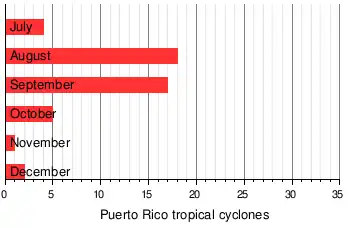 - August 28–29 - Hurricane Dorian moved farther northeast than initially anticipated, resulting in very limited effects in Puerto Rico.[117] A man in Bayamón died when he fell off his roof trying to clean drains in advance of the storm.[118]