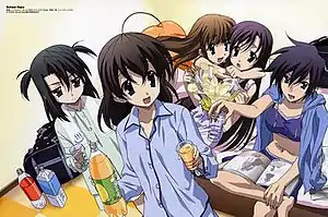 - High maintenance or fastidious and tomboyish, Hikari Kuroda is a student in year one, class three, recognizable by her signature squid rings hairstyle. She initially believes that Makoto and Sekai are dating from the very start, and tends to negatively generalize him; later growing closer to him herself. Though she is actually quite friendly and social, Hikari is the most childish of the cast; sporting an unduly knack for whining and prying into the affairs of others. Her family owns a confectionery store and café, famous for its lemon custard pie. Hikari is good friends with Sekai and has an unreciprocated crush on Taisuke Sawanaga. Her birthday and her surname are derived from Kuroda Kiyotaka. In the anime, she grew out of her crush on Taisuke, and began having a sexual relationship with Makoto.