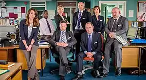 Julie Dodson (Pippa Haywood) is head of Syndicate 3 and close friends with Gill Murray. Kevin used to work for her until he was moved to MIT, and he harbours a deep resentment. Haywood joined the cast in the second series, notably when handling the inquiry into the murder of Nick Savage, and becomes more prominent in the latter half of Series 3 when asked to lead the Helen Bartlett case. Noting the character's close relationship with Gill, Haywood stated, "I like the double act between Julie and Gill Murray. When they are at work they have this reputation that they are fearsome; a force to be reckoned with, but there's also a lot of humour between them".[3] Late in Series 4 Dodson is asked by Janet to investigate allegations that Gill is drunk on the job, putting a deep strain on their friendship when Gill's ability to lead the MIT is called into question. Following Gill's departure, Dodson assigns a series of temporary SIOs to Syndicate 9, staffed exclusively by Constables. She later promotes Rachel into the position of Detective Inspector.