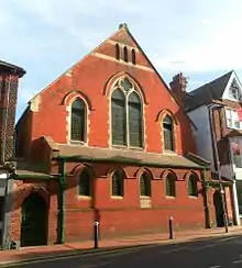 In 1780 a permanent chapel was built on the current site.[45] In 1825[46] it was replaced by the current building under the pastorate of John Cooper. |