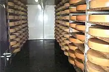 This is a list of the varieties of traditional cheeses made in Switzerland. Switzerland produces over 475 varieties of cheese, a milk-based food produced in a large range of flavors, textures, and forms.[1][2] Cow's milk is used in about 99 percent of the cheeses Switzerland produces. The remaining share is made up of sheep milk and goat milk. The export of these cheeses, some 40% of production in 2019, is economically important for Switzerland.[3]