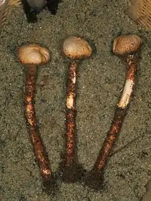 - ↑ Pina C, Esqueda M, Altes A, Gutierrez A (2010). "First record of Tulostoma gracilipes (Agaricales, Agaricaceae) for the Americas". Mycotaxon. 113: 371–6. doi:10.5248/113.371.
