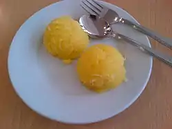Pudding | Sweet rice pudding colored yellow with saffron |