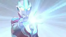 In Ginga S, Ginga returns to Earth after Exceller made his move to revive Dark Lugiel. He achieved the form Ultraman Ginga Strium (ウルトラマンギンガストリウム, Urutoraman Ginga Sutoriumu) with the help of Taro, who loaned the Ultra Brothers' powers to him. He also receives an aid from Victory, an Ultra that native to the Earth. But as the battle against Exceller and Lugiel ended once more, he loses the form again and returned to space. As Ginga Strium, Ginga is considered a Super Ultraman (スーパーウルトラマン, Sūpā Urutoraman) combination (due to the use of Strium Brace/Ultraman Taro); his ability perimeters is heightened to be on par with that of Victory, possessing enhanced ESP and his fighting stance replicated that of Taro.[11] Although retaining his original attacks, Ginga is capable of using the finishers of all six Ultra Brothers and utilize Cosmo Miracle Ray (コスモミラクル光線, Kosumo Mirakuru Kōsen) by combining their attacks. His loaned power from the Ultra Brothers are: