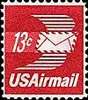 Domestic U.S. Air Mail was established as a new class of mail service by the United States Post Office Department (POD) on May 15, 1918, with the inauguration of the Washington–Philadelphia–New York route. Special postage stamps were issued for use with this service.[1] Domestic air mail became obsolete in 1975, and international air mail[2] in 1995, when the USPS began transporting First Class mail by air on a routine basis.[3][4] All post-1977 United States stamp images are copyright of USPS.[5]
