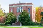 | Gerlinger Hall | 1921 | Historic Core 44°02′37″N 123°04′31″W / 44.043589°N 123.075372°W | ![]() | Originally Woman's Memorial Hall, the building was renamed in 1929 for Irene Hazard Gerlinger, first woman regent and fundraising donor.[n 32] Part of Women's Memorial Quadrangle, NRHP Reference: 92001320 [n 33] |