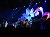 In February 2018, Yes headlined Cruise to the Edge involving original keyboardist Tony Kaye as a special guest, marking his first performances with the band since 1994.[69] A U.S. leg in June and July also included guest performances from Kaye, Horn, Tom Brislin and Patrick Moraz, who had last performed with Yes in 1976.[70][71][72] The tour culminated with a Japanese leg in February 2019.[73] Schellen continued to play as a second drummer to support White, who had a bacterial infection in his joints from November 2017.[74][75][76][77][71]