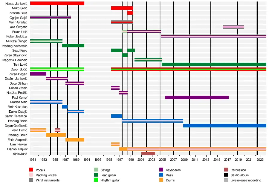 Currently, the band consists of founding member, vocalist and guitarist Sejo Sexon, longtime drummer Branko Trajkov, guitarist Toni Lović, bassist Dejan Orešković, and violinist and keyboardist Robert Boldižar.[2]