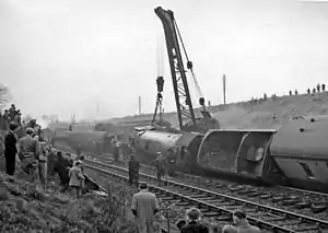 - On 17 July 1948, a passenger train was derailed at New Southgate, London due to a combination of defective track and excessive speed. One person died.[3]