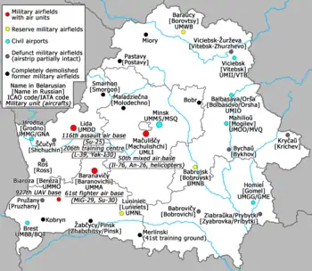 {{cite web}}: CS1 maint: unfit URL (link) – ICAO codes and coordinates - "Airports in Belarus". Great Circle Mapper. – IATA codes, ICAO codes and coordinates