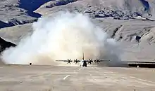 The Indian union-territory of Ladakh currently has only one airport meant for civilian flights, the Kushok Bakula Rimpochee Airport in Leh. The airport at Leh is jointly operated by the Airports Authority of India and the Indian Air Force. There is another airport at Kargil, but it is currently used for defence purposes only. Several airstrips have been built by the Indian Air Force in Ladakh in the past to improve connectivity and for security purposes. Since the start of 2020–2022 China–India skirmishes, the Government of India has pushed for improving the existing aviation infrastructure across Ladakh.[1][2]