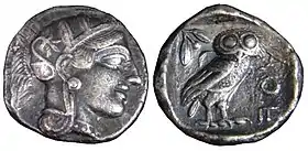 • The Attic standard was the standard issued by Athens from the late sixth century BC onwards. It was based on a drachma of 4.3 g, but in practice the main coin was the tetradrachm of 17.2 g. Each drachma was divided into six obols of 0.72 g. It was interchangeable with the Euboean standard, used by the cities of Euboea and their many colonies throughout the Mediterranean, which was based on a stater of 17.2 g divided into six hectae of 2.86 g and the two are often referred to together as the Attic-Euboean standard.[1] Corinth also used a variant based on a stater of 8.68 g (half an Attic tetradrachm), divided into three units of 2.89 g.[6] In the Classical period, this standard was issued in vast quantities by the Athenian Empire and became the dominant weight standard used for payment of soldiers and for long-distance trade.[1] The use of the standard by the Euboean and Corinthian colonies meant that it also became the dominant standard used in Sicily and northwestern Greece.[7] Philip II of Macedon used the standard for his gold coinage and Alexander the Great used it for silver as well from 333 BC.[8] It remained dominant in the Eastern Mediterranean in the Hellenistic period, when it was issued by Antigonid Macedon, the Seleucid empire, and many individual city-states. By the Hellenistic period, the Attic standard had dropped to a tetradrachm of 16.8 g and a drachm 4.2 g.[9] In Hellenistic Sicily and Italy, the Attic standard was retained for gold, but silver coinage was reduced repeatedly until it was replaced by the Roman denarius around 211 BC.[10]