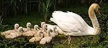 A mute swan with its cygnets