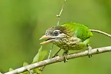 The leafbirds are small, bulbul-like birds. The males are brightly plumaged, usually in greens and yellows.