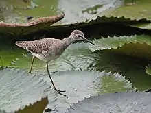 The jacanas are a group of tropical waders in the family Jacanidae. They are found throughout the tropics. They are identifiable by their huge feet and claws which enable them to walk on floating vegetation in the shallow lakes that are their preferred habitat.