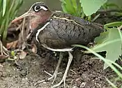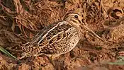 Nightjars are medium-sized nocturnal birds that usually nest on the ground. They have long wings, short legs and very short bills. Most have small feet, of little use for walking, and long pointed wings. Their soft plumage is camouflaged to resemble bark or leaves.