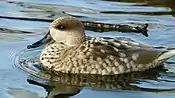 | Marbled teal | Marmaronetta angustirostris | R | Vulnerable | Vagrant recorded in 1985 | ![]() | |
