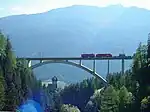 ![]() | 12 | Outer Nösslach Bridge | Äußere Nösslachbrücke | 180 m (590 ft) | 358 m (1,175 ft) | Arch Concrete deck arch | 1967 | Gries am Brenner 47°04′03.9″N 11°28′52.2″E / 47.067750°N 11.481167°E | Tyrol | [S 26] [30] | |