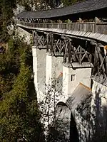 ![]() | 4 | High Bridge (St. Georgenberg) | Hohe Brücke (St. Georgenberg) | Leds to St. Georgenberg-Fiecht Abbey Height : 33 m (108 ft) Cultural heritage | 50 m (160 ft) | 2 levels Masonry 1 semi-circular arch Covered bridge Wood | Footbridge Stanserbach | 1709 | Stans 47°22′39.3″N 11°41′33.9″E / 47.377583°N 11.692750°E | Tyrol | [S 1] [3] [4] |