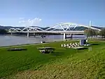 ![]() | 19 | Floridsdorf Bridge | Floridsdorfer Brücke | 167 m (548 ft) | 432 m (1,417 ft) | Box girder Steel Twin bridges 82+167+82 | 1978 | Vienna 20th–21st district 48°14′49.5″N 16°23′4.2″E / 48.247083°N 16.384500°E | Vienna | [S 31] [36] [37] | |