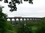 Denbighshire | Wrexham | Adjacent to aqueduct, spans the Ceiriog Valley, partly in Wales, about 98 ft (30 m) high.[28] |