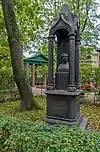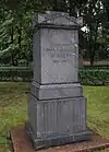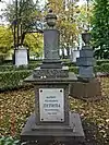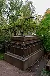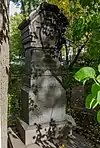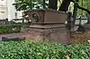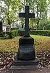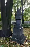 Over time the cemetery became a popular and prestigious burial ground for those of many areas of society. The wealthy merchant A.I. Kosikovsky was buried under a monumental sarcophagus on a high pedestal surmounted by a canopy on eight fluted columns.[4] Opposite it stood a similarly grand monument to the statesman Pavel Demidov, which has since been lost.[4] In 1857 the remains of the composer Mikhail Glinka were returned from Berlin and buried in the cemetery, with a grand monument erected two years later to the design of architect I. I. Gornostayev, with sculptures by Nikolay Laveretsky.[4][9] On 1 February 1881 the author Fyodor Dostoevsky was buried in the cemetery, with a similarly large monument.[4][10] During the 1880s composers Modest Mussorgsky and Alexander Borodin were buried in the northern part of the grounds, with Pyotr Ilyich Tchaikovsky following in 1891.[4][11][12][13]