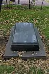 The organisers were faced with the problem that despite designating the cemetery to be the artists' necropolis, historically the Tikhvin had primarily been the burial ground of statesmen, military leaders, scientists, and composers.[4] There were relatively few graves of writers, who had tended to prefer the Smolensky Cemetery; or artists, who had traditionally chosen the Nikolskoe or Novodevichy Cemetery.[4] This necessitated the transfer of a large number of burials and monuments, which took place in two main periods, from 1936 to 1941 and from 1948 to 1952.[4] There were also several burials of prominent Soviet citizens, as the cemetery gained the status of an urban pantheon.[2] Those buried here included the scientist Sergey Lebedev in 1934, artist Mikhail Avilov in 1954, and actor Nikolay Cherkasov in 1966. In 1972 the remains of the composer Alexander Glazunov were transferred from Paris.[2] In 1968 Fyodor Dostoevsky's wife Anna Dostoevskaya was reburied next to her husband, while theatre director Georgy Tovstonogov was interred in the cemetery in 1989. So far Tovstonogov's has been the last burial to take place in the cemetery.[2][4]