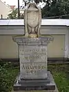 ![]() | Stepan Pimenov | 1784 | 1833 | Sculptor, Imperial Academy of Arts, Kazan Cathedral, Imperial Porcelain Factory, Mining Institute, Admiralty building, General Staff Building. Originally buried in the Smolensky Cemetery, transferred to the Tikhvin in 1936, monument erected in 1939. | ![]() | [86] |
