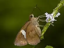 - Brush flitter, Hyarotis microsticta (Wood-Mason & de Nicéville, 1887)[19]