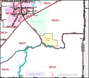 ![]() The Tiawah CDP (in yellow) lies east of Oklahoma State Highway 88. |