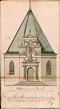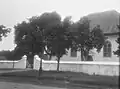 In Batavia, few of the earliest Protestant church structures in Indonesia are well documented. The first church building in the city was a provisional church, erected in 1625 together with the earlier city hall. In 1632 the foundation for a proper church was laid. This was followed by the first stone to be laid in 1640 and the building, known as Oude Hollandse Kerk ("Old Holland Church"), was finished in 1643.[7] The Old Holland Church was later expanded and renamed "Nieuw Hollandse kerk" ("New Holland Church") in 1736. The new church was shaped octagonally according to Calvinism's focus on the sermon and had a domed roof.[8] The church was toppled by an earthquake in 1808, and the remains were completely demolished by Governor General Daendels to obtain building materials for a new government center in Weltevreden. The base of the church can be seen in the Wayang Museum.