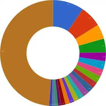 This list of the 100 most common Chinese surnames derives from China's Ministry of Public Security's annual report on the top 100 surnames in China, with the latest report release in January 2020 for the year 2019.[9] When the 1982 Chinese census was first published, it did not include a list of top surnames. However, in 2004, the State Post Bureau subsequently used the census data to release a series of commemorative stamps in honor of the then-most-common surnames in 2004.[10][11]