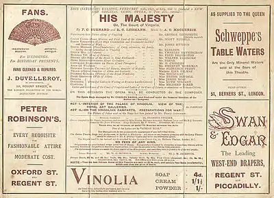 - 1897 - His Majesty; or, The Court of Vingolia, comic opera (fp. Savoy Theatre, London, 20 February 1897) [full score lost]