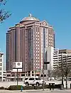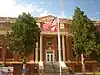 Designed in the Romanesque Revival style by J. J. Kane,[54] but remodeling and renovations in 1934 and the 1970s transformed the building into a Moderne style structure.[54][59] |
