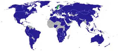 This article lists diplomatic missions resident in Sweden. At present, the capital city of Stockholm hosts 109 embassies. Several countries have ambassadors accredited to Sweden, with most being resident in Berlin, Brussels, Copenhagen, or London.[1]