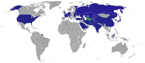 This is a list of diplomatic missions of Turkmenistan, excluding honorary consulates.[1] The country has established diplomatic relations with 151 states.[2]