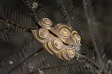 - ↑ Fehse, D.; Trigo, J.E. (2015). "Contributions to the knowledge of the Ovulidae, XXIII: A new species in the genus Simnia Risso, 1826 and notes on Diminovula aurantiomacula Cate & Azuma in Cate, 1973 (Mollusca: Gastropoda)". Conchylia. 45 (1–3): 31–42.