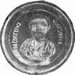 Archeological Museum, Bologna, Italy[15] | 4th century[16] | 3.5 cm in diameter[15] | Latin: M. COCCEIUS ONESIMUS (probably, the name of the boy)[15] |