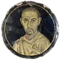 The medallion is often referred to as a portrait of Galla Placidia and her children, but the current scholarly consensus is strongly against this 18th-century identification.[2][3]
