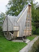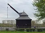 1288, rebuilt in 1434, in service til 1767; modern small-scale reconstruction of the medieval crane at Brugge harbour depicted, two treadwheels; | Wood | ![]() |