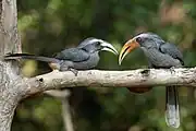 Hornbills are birds in the families Bucerotidae and Bucorvidae. There are currently 62 extant species of hornbills recognised by the International Ornithologists' Union, two in Bucorvidae and 60 in Bucerotidae.[1] Many species of fossil hornbills are known from the Miocene onwards; however, their exact number and taxonomy are unsettled due to ongoing discoveries.