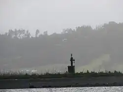 Curaco de Vélez. | 42°26.0′S 73°37.0′W / 42.4333°S 73.6167°W | Q.(9)W. period 15s | 30 9 5 | Yellow fiberglass column, black stripe on concrete base; | 28. | |