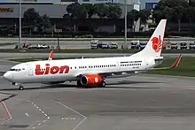 A Lion Air Boeing 737-900ER at Singapore Changi Airport. Lion Air is the largest low-cost airline in Indonesia.
